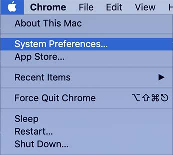 - Click an apple sign in the upper left corner and then select System Preferences.