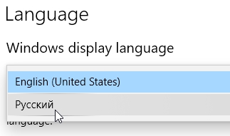 - In the Windows display language section, select the desired language in the dropdown menu. If you don’t have the desired language in the list, install it.